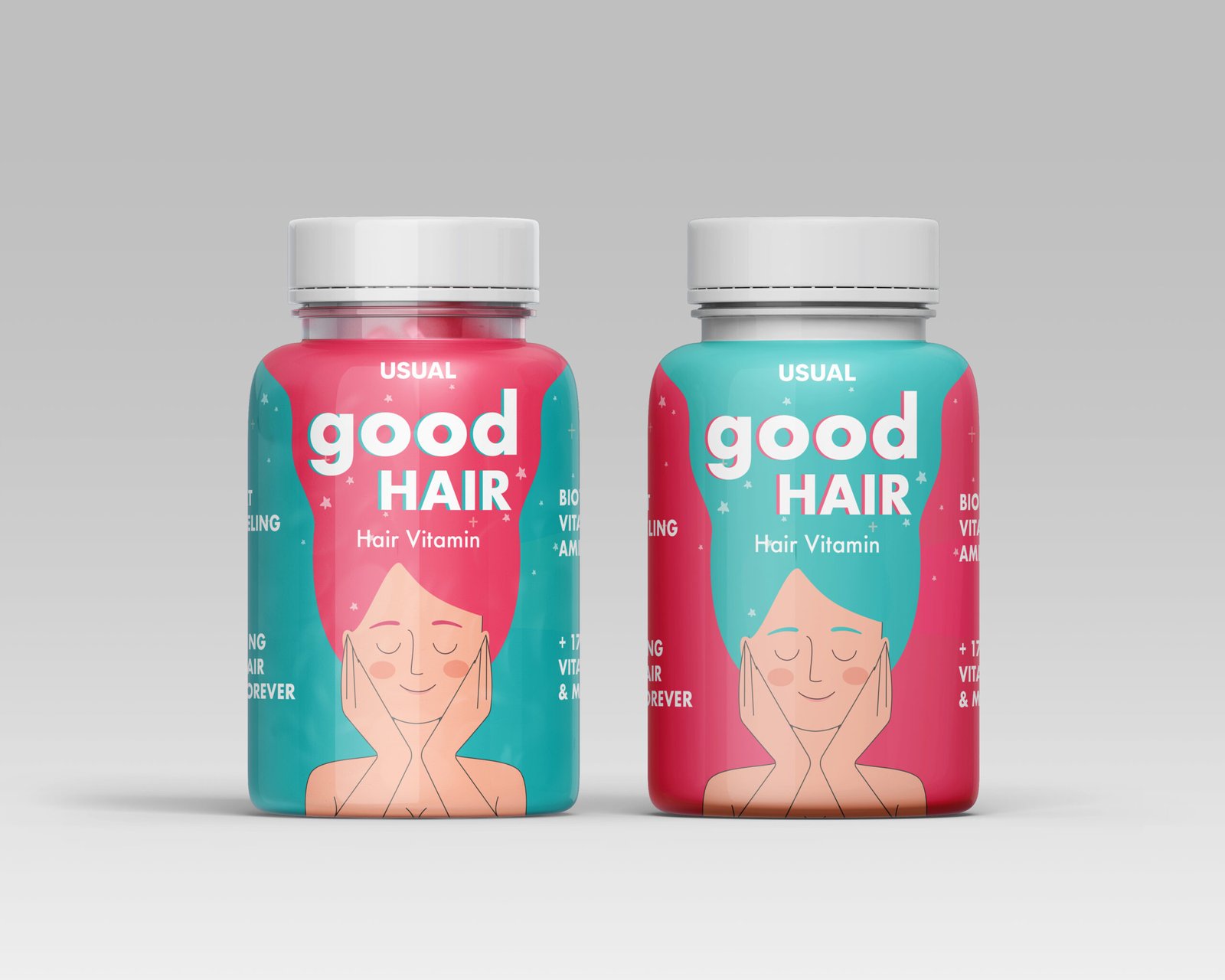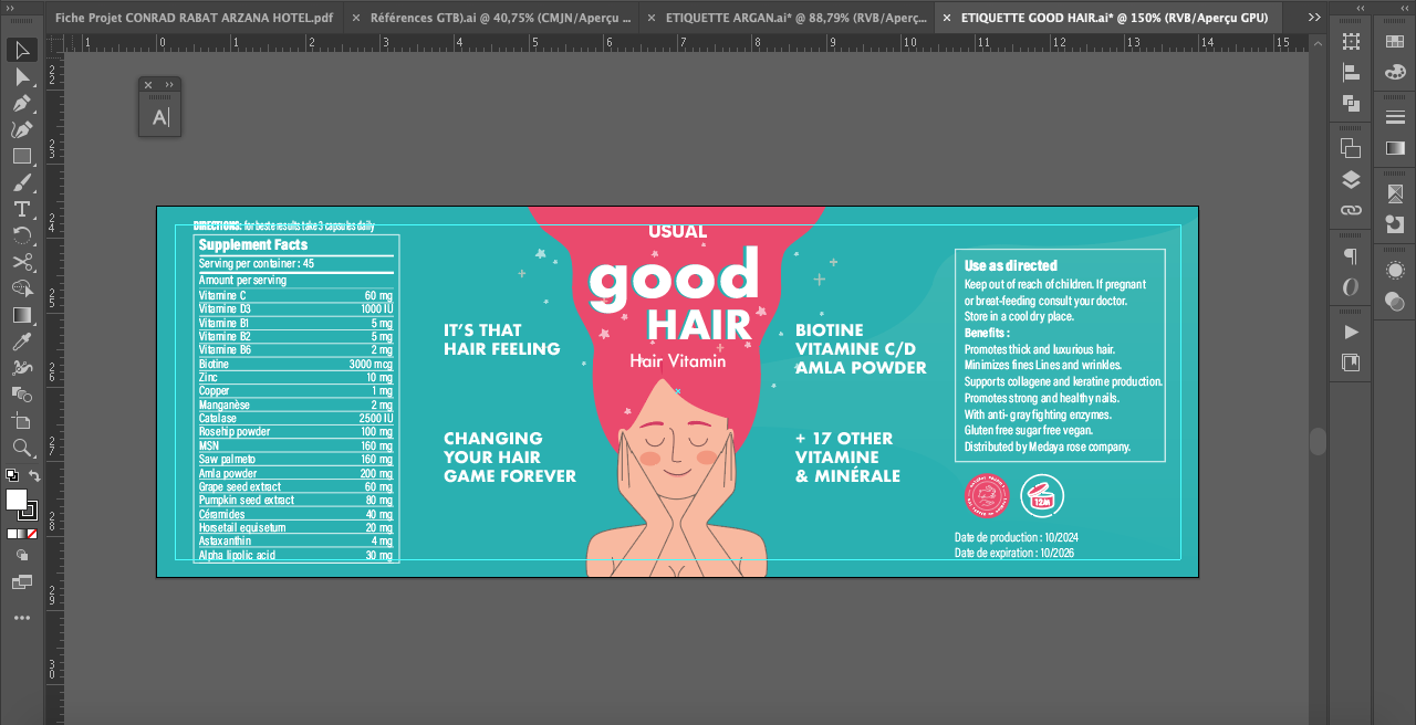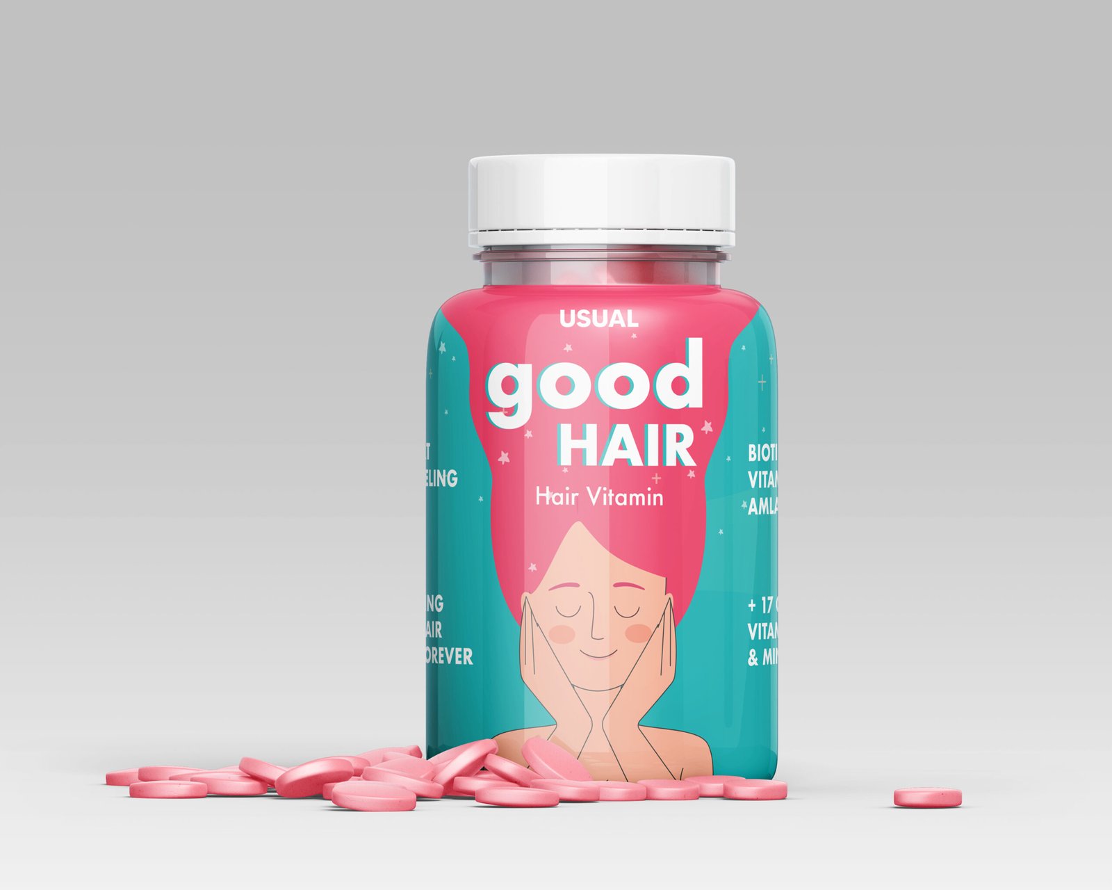 Packaging du produit GOOD HAIR pour USUAL, brand spécialité produits cosmétique et vitamines hair , nous y avons travaillé en 2024