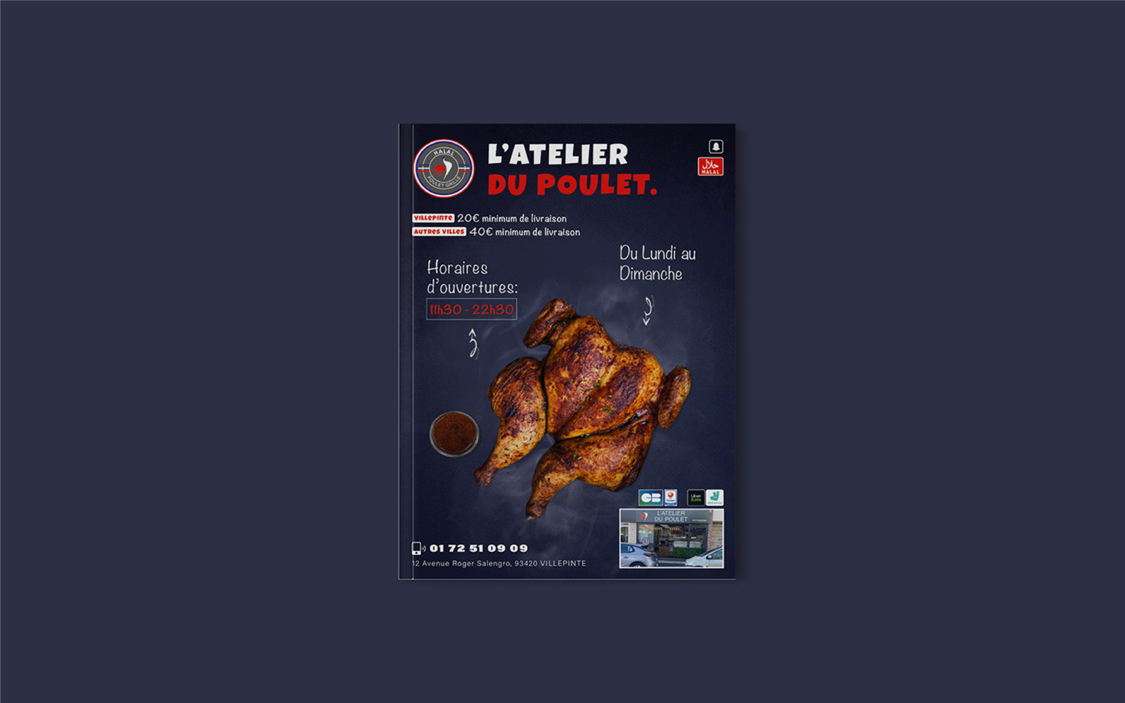 L’ATELIER DU POULET c’est un Snack à Paris au France spécialité de Poulet. nous y avons travaillé en 2022